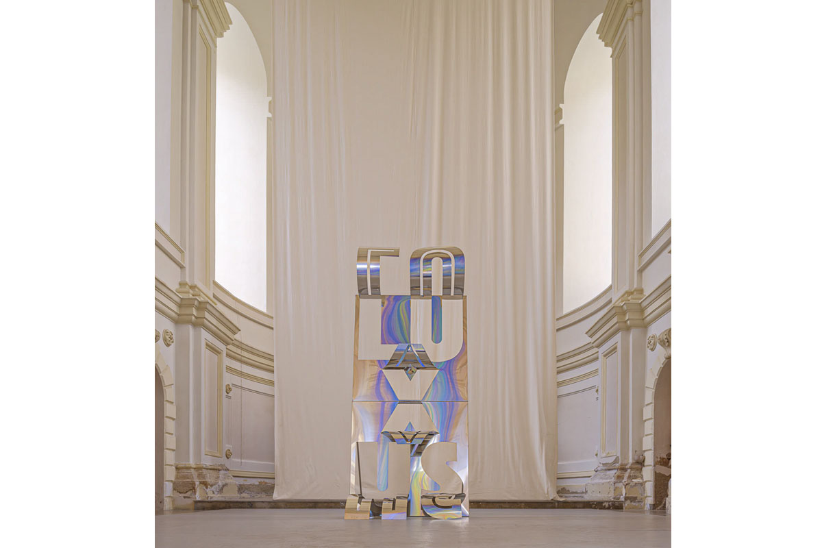 LU X US, Edelstahl verspiegelt, 3,5 x 1,5 x 1 m